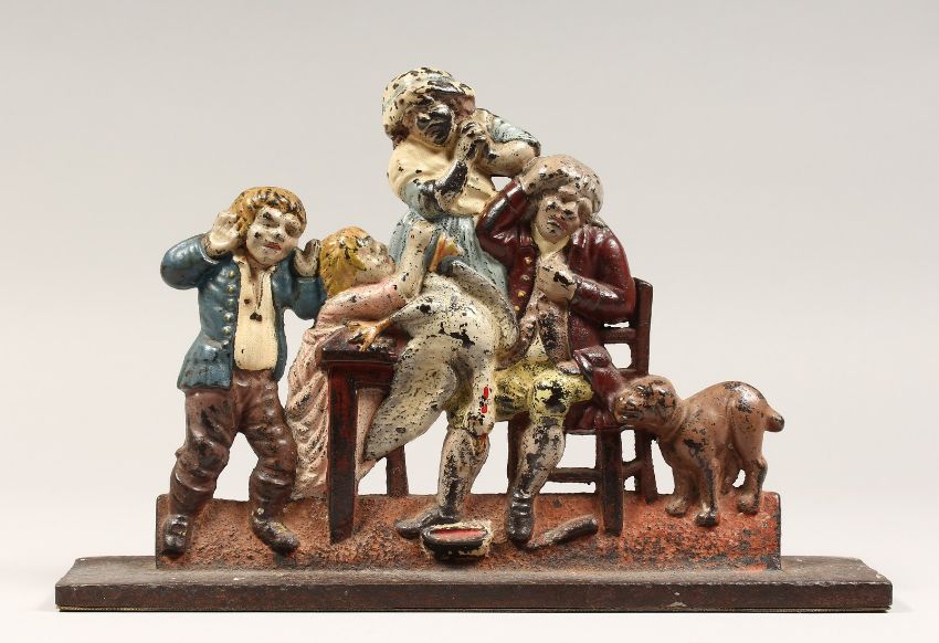 A LATE 19TH CENTURY CAST IRON AND PAINTED FIGURE DOOR STOP