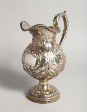 AN R & W WILSON 19TH CENTURY PHILADELPHIA SILVER JUG repousse with flowers and scrolls