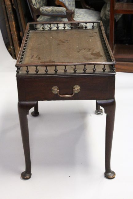 A GEORGE III DESIGN MAHOGANY RECTANGULAR "SILVER" TABLE, with galleried top , single frieze drawer on cabriole legs.
