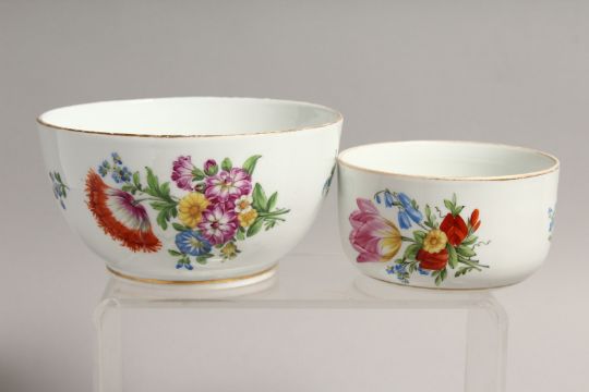 A PART MEISSEN FLORAL SERVICE, comprising five cups, six saucers a jug and two bowls.