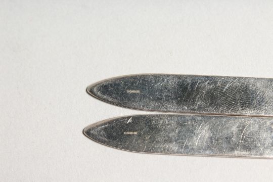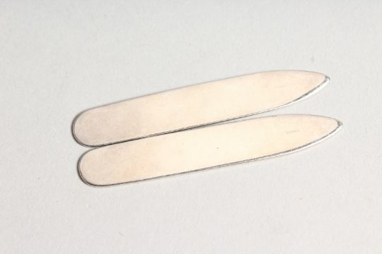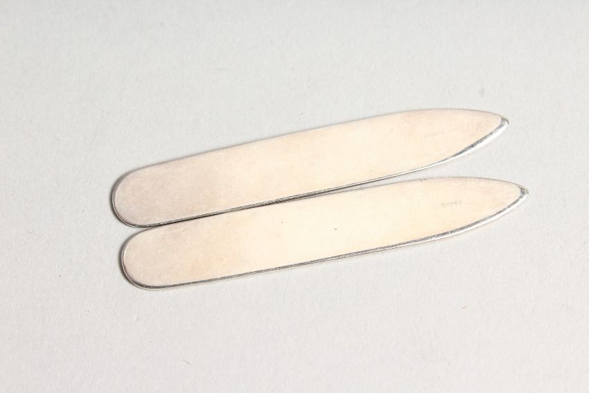 A PAIR OF 'PINK' BOXED SILVER COLLAR STIFFENERS.