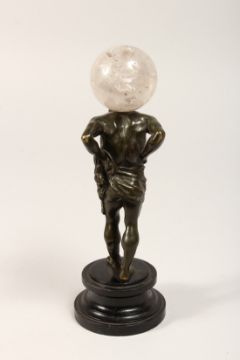 A BRONZE HERCULES with a ball on his shoulder.