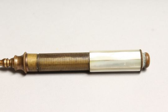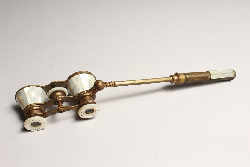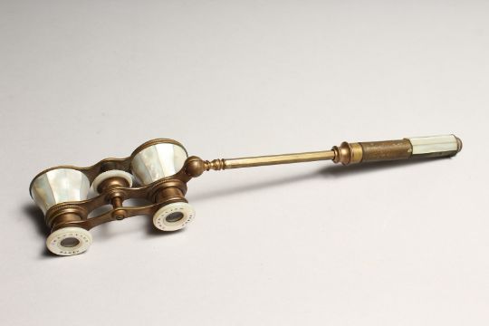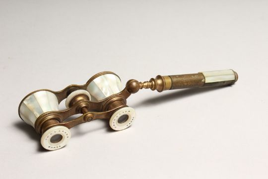 A PAIR OF IVORY, MOTHER OF PEARL AND GILT OPERA GLASSES with handle