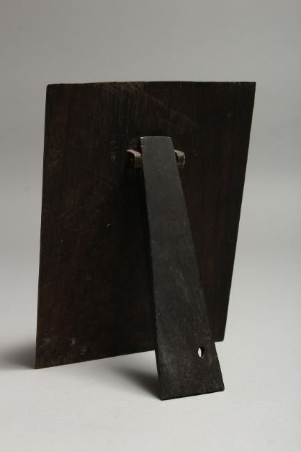 3.5ins x 2.5ins on a wooden base.