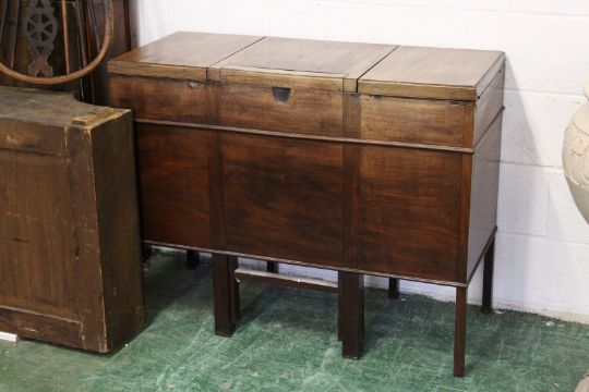 A GENTLEMAN'S GILLOWS OF LANCASTER MAHOGANY DRESSING TABLE, with rising mirror, flaps to the sides with apertures and basin aperture over panel doors and supported on tapering legs.