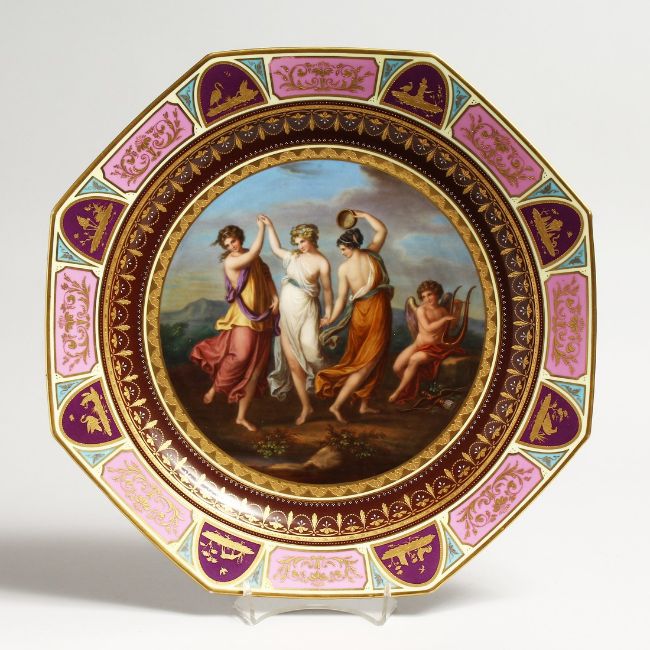 A SUPERB LARGE VIENNA OCTAGONAL DISH "Amor und tanzende grazien"