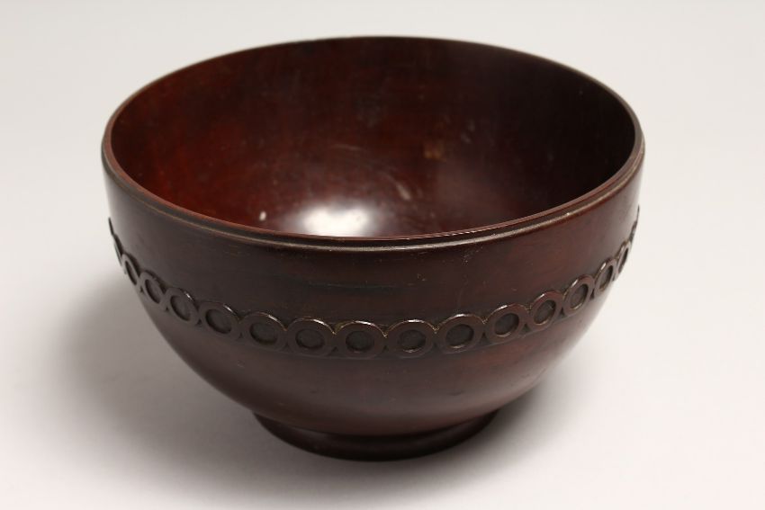 A GEORGIAN TURNED AND CARVED MAHOGANY CIRCULAR BOWL