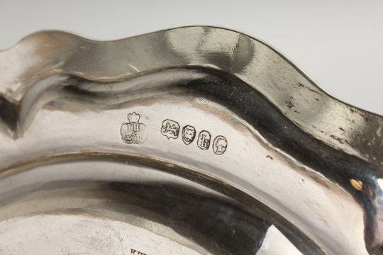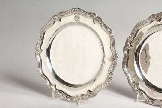 A GOOD PAIR OF HUNT & ROSKELL LATE STORR & MORTIMER VICTORIAN SILVER PLATTER with beaded edge and crest "Earls Coronet".