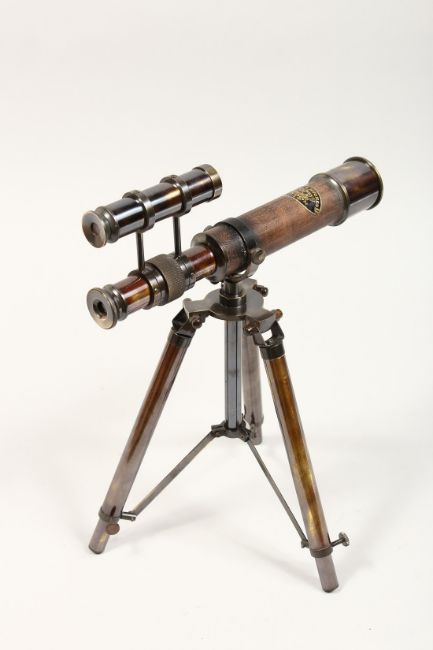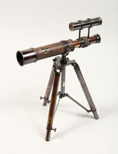 A BRASS TABLE TOP TELESCOPE ON A STAND