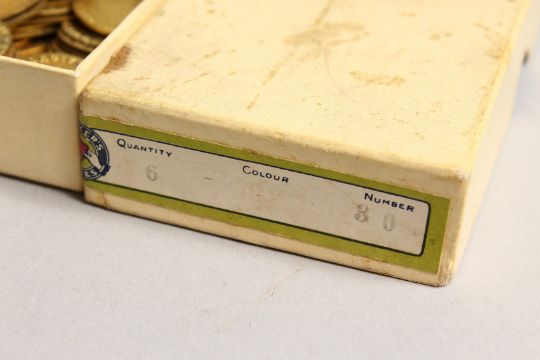 A BOX OF HALF GUINEA GILT COUNTERS DATED 1788