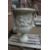 A VERY GOOD PAIR OF ITALIAN CARVED WHITE MARBLE CAMPAGNA TWIN HANDLED URNS,