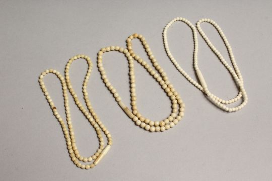 THREE DELICATE IVORY BEAD NECKLACES