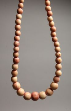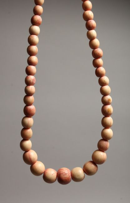 A STAINED IVORY GRADUATED BEAD NECKLACE of forty five beads