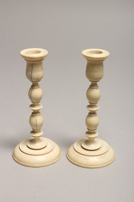 A PAIR OF TURNED IVORY CANDLESTICKS