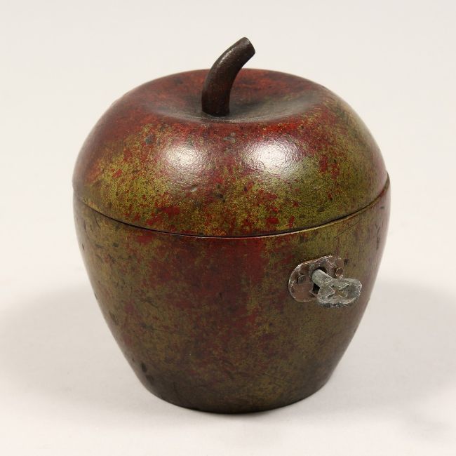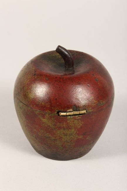 A GOOD GEORGIAN STYLE PAINTED APPLE TEA CADDY.