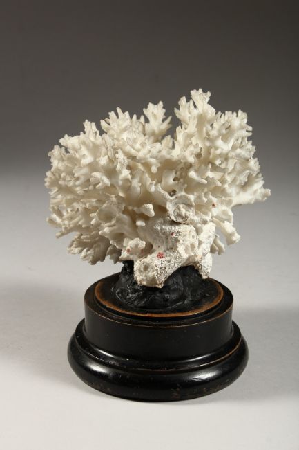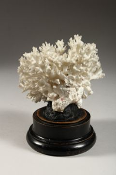 A WHITE CORAL SPECIMAN mounted on a circular base