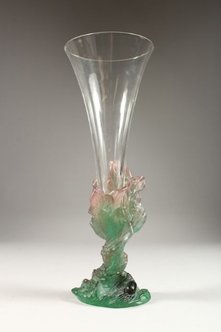 DAUM NANCY, A GOOD PLAIN TAPERING VASE with moulded base.