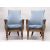 A VERY GOOD PAIR OF WILLIAM IV ROSEWOOD FRAMED BERGERE CHAIRS with blue padded upholstery and caned frame on formed legs with brass casters.