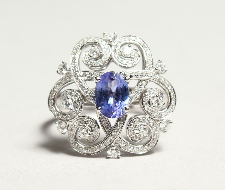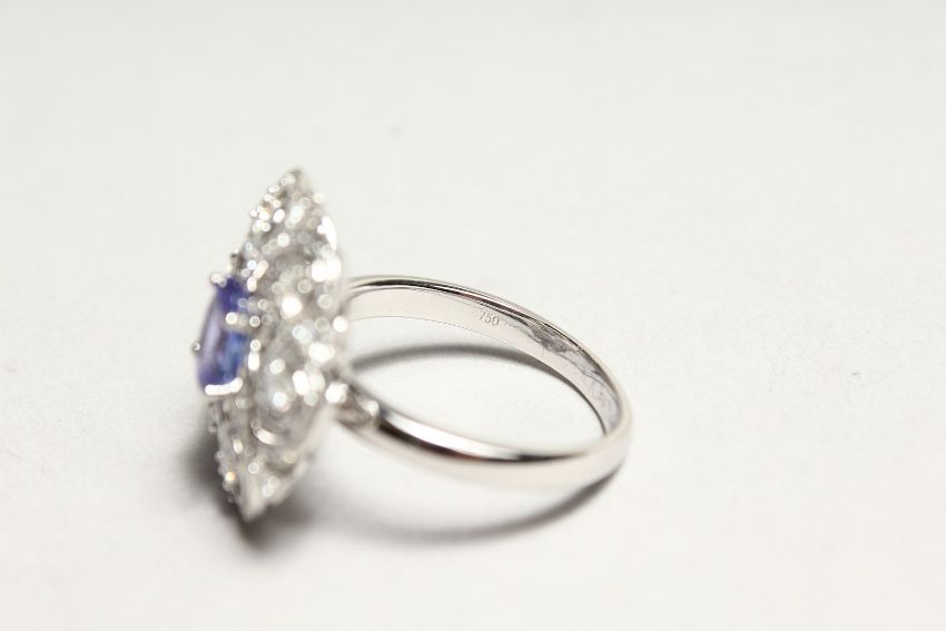 A GOOD 18CT WHITE GOLD, DIAMOND AND SAPPHIRE RING