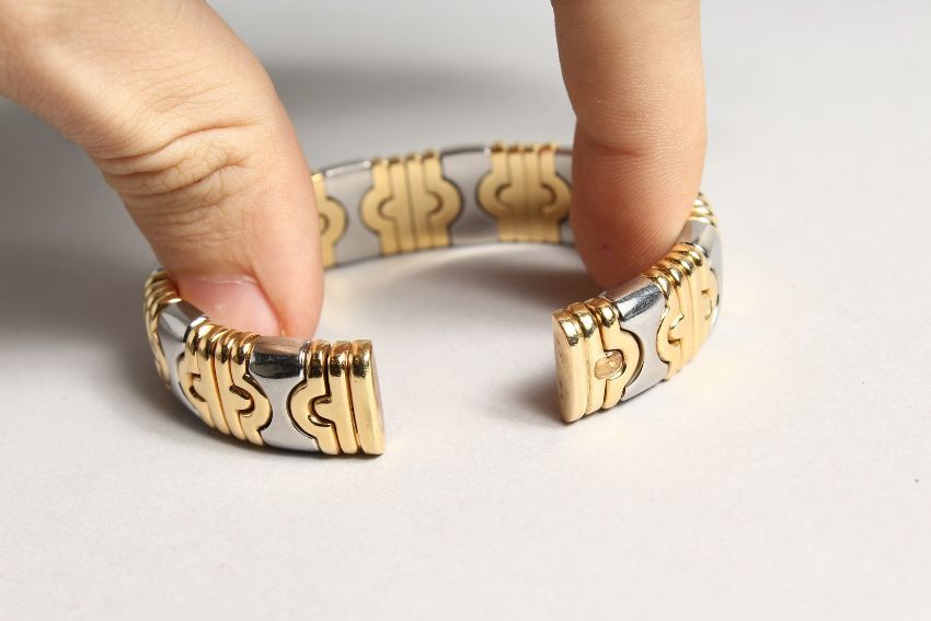 A SUPERB BULGARI 18CT TWO COLOOUR BRACLET