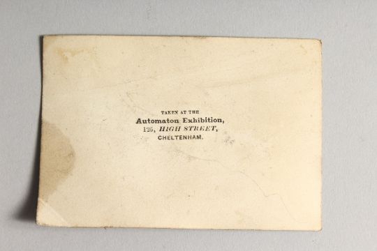 AN EARLY 20TH CENTURY SILHOUETTE PORTRAIT BUST OF A GENTLEMAN, loosely mounted on a card printed to the reverse, 'TAKEN AT THE AUTOMATON EXHIBITION, 126 HIGH STREET, CHELTENHAM'