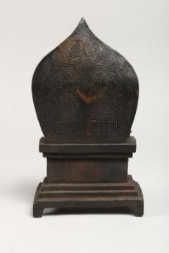A CHINESE BRONZE SHRINE, cast with a pair of seated figures