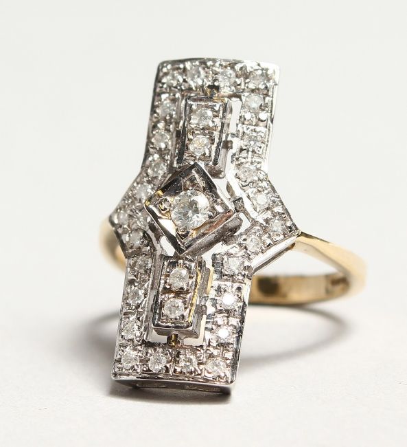 A GOOD 18K WHITE GOLD DECO DESIGN DIAMOND RING