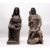 A GOOD PAIR OF 16TH /17TH CENTURY CARVED OAK RELIGIOUS FIGURES, one depicting a hooded man, a staff in his hand and a dog at his feet; the other as a female figure holding a book, with a child at her side.