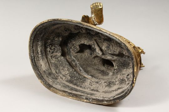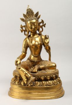 A LARGE CHINESE GILT BRONZE FIGURE OF A SEATED FEMALE DEITY