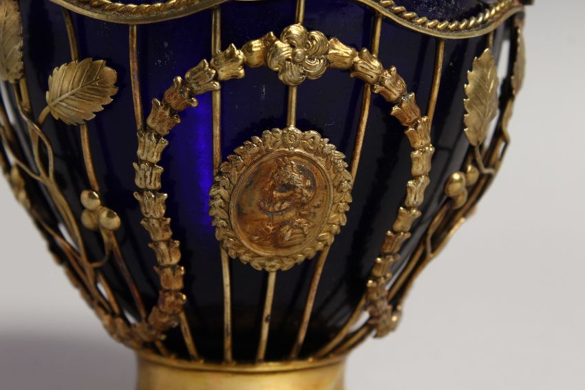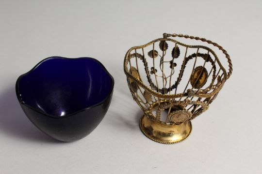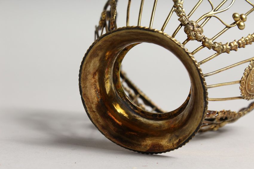 A GOOD GEORGE III SILVER GILT SUGAR BASKET with garlands and medallions and twist handle.