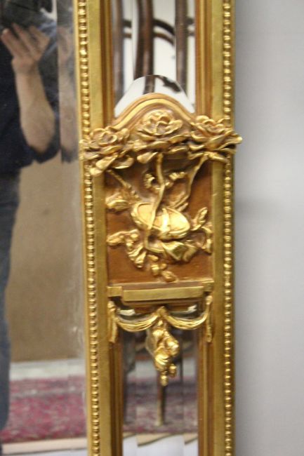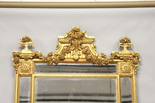 A LARGE CLASSICAL STYLE GILT FRAMED PIER MIRROR with a central rectangular mirror plate within six mirror slips