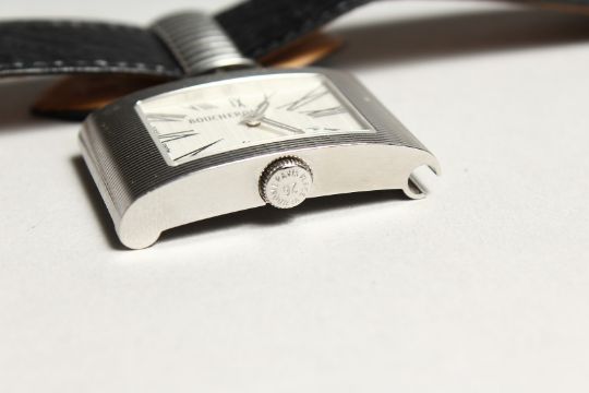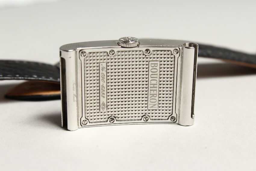 A GOOD BOUCHERON WRIST WATCH with leather strap.
