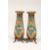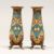 A SMALL PAIR OF GILT BRONZE AND CHAMPLEUVE ENAMEL VASES, on four scroll feet,