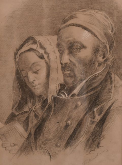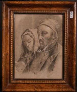 Continental School 19th Century, A couple in a church, charcoal and white, 12" x 9".