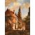 20th Century, A Dutch street scene with figures, oil on panel, 7" x 5".