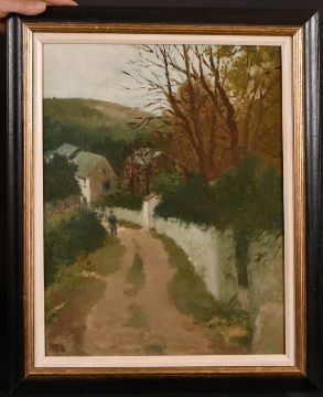 H E Lewis, 20th Century, 'Sussex Landscape', oil on board, signed with initials and with label verso, 17" x 14".