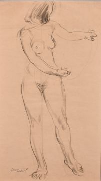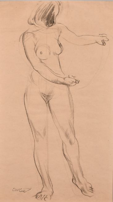 Charles James McCall, A charcoal sketch of a standing female nude, 14" x 8", along with a mixed media sketch of a recumbent female nude by Kenneth Walch, 12" x 22" (2).