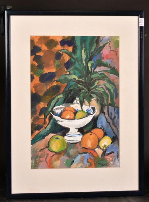 Maria Kuipers, 'Bowl of Fruit', gouache, signed, 27.25" x 20".