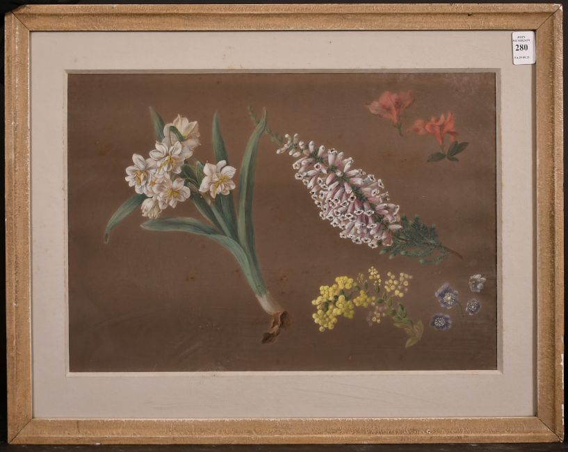 19th Century English School, A study of mixed botanicals, watercolour, 11" x 16.5".