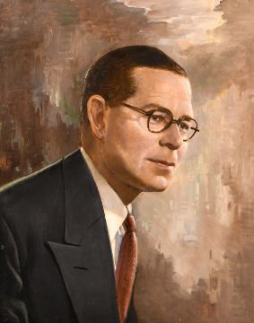 Mid-20th Century, A head and shoulders portrait of a man wearing glasses, oil on canvas, 20" x 16".