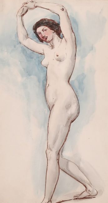 William Edward Frost (1811-1877) A female nude, watercolour, pen and ink, 7.25" x 4".