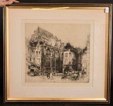 Headley Fitton (1857-1929) 'Church of St. Jean, Troyes', etching, signed in pencil, 15" x 16".