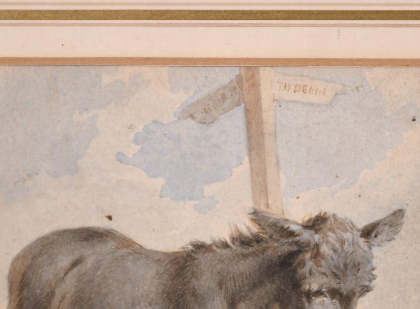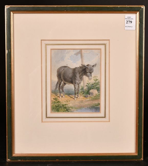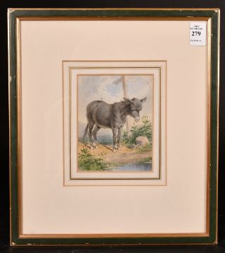 19th Century English School, A Donkey by the water's edge, watercolour, indistinctly signed, 5" x 4".