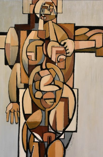 Roger Smith (1932-2004) British, A semi abstract study of a figure, oil on panel, signed and dated 2001, 22" x 15".