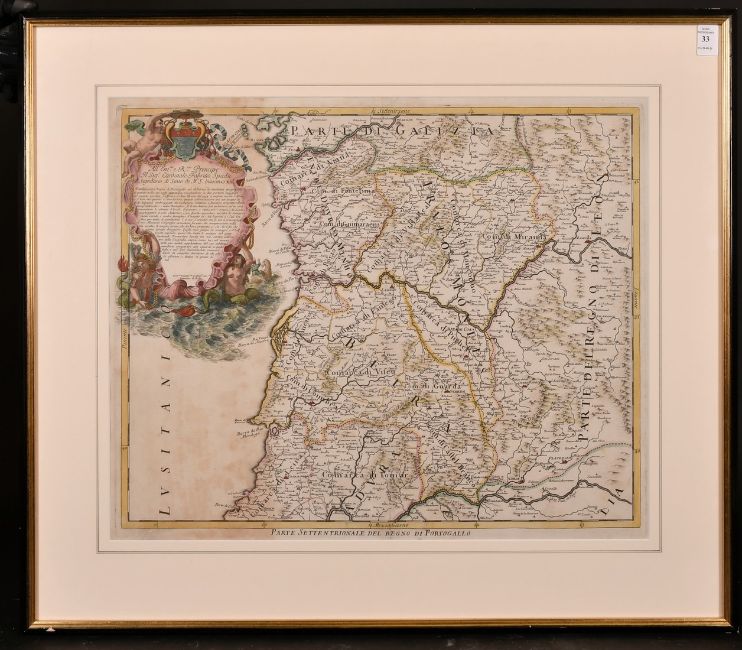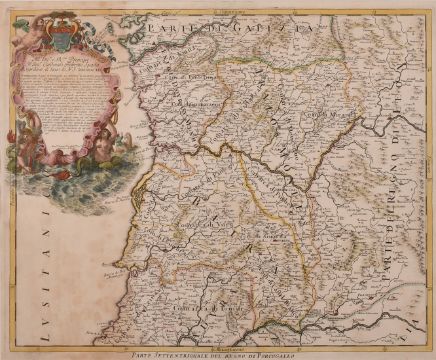 Domenico de Rossi, Circa 1692, 'Parte Settentrionale del Regno di Portogallo', a hand-coloured map, 18" x 22".