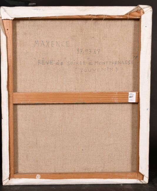 Maxence, 'Reve de Soiree a Montparnasse', oil on canvas, signed, inscribed verso, 21.5" x 18". (unframed).