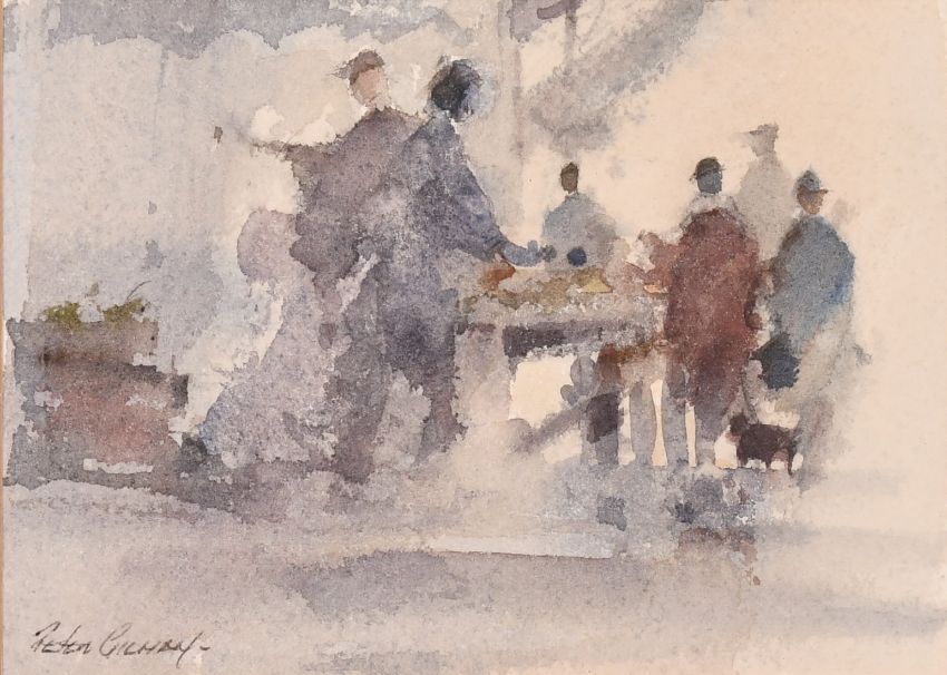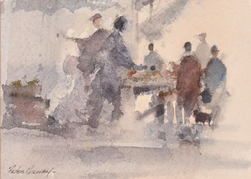 Peter Gilman, 'Leadenhall Market, 1981', watercolour, signed, 4" x 5", along with an unrelated pencil and watercolour sketch of river scene, 5.5" x 9.5" (2).