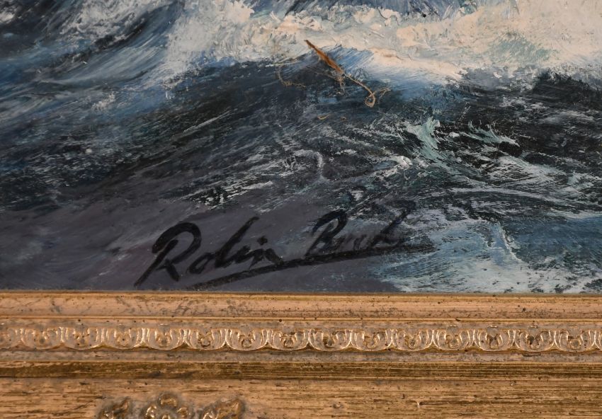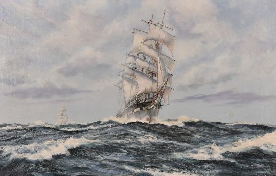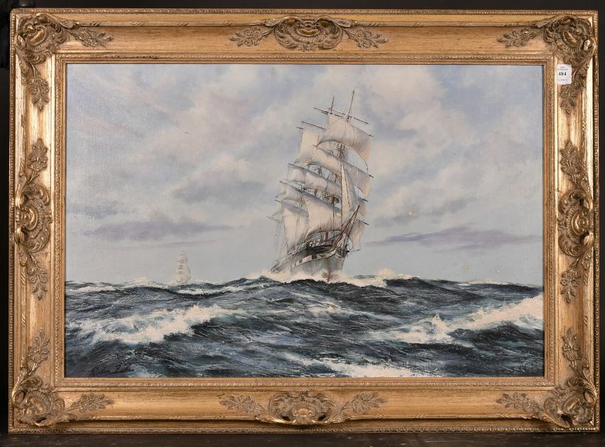 Robin Brooks (1943) British, The Iron Clipper 'Timaru' and her sister ship 'Oumaru' in open waters bound for New Zealand, oil on canvas, signed, 20" x 30".