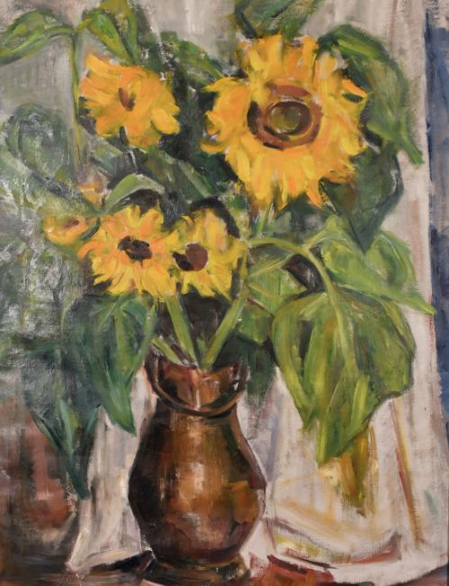 20th Century School, A Still life of Sunflowers in a vase, oil on canvas, 37.25" x 28.75".
