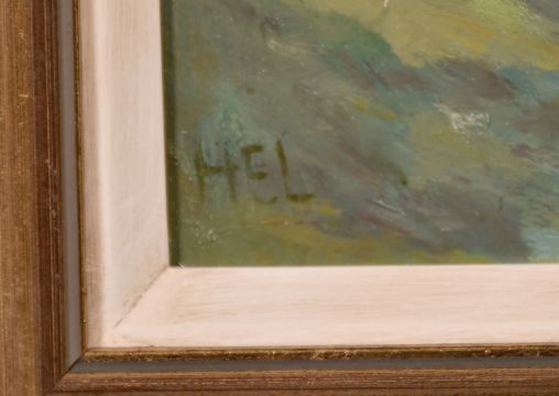 H E Lewis, 20th Century, 'Near Hailsham', oil on board, signed with initials and with label verso, 13" x 12".